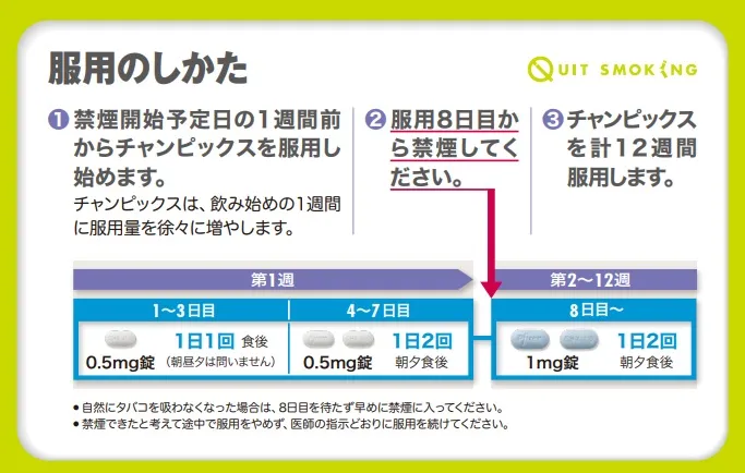 ※出展:ファイザー株式会社「チャンピックス 服薬指導箋」https://www.pfizerpro.jp/medicine/champix