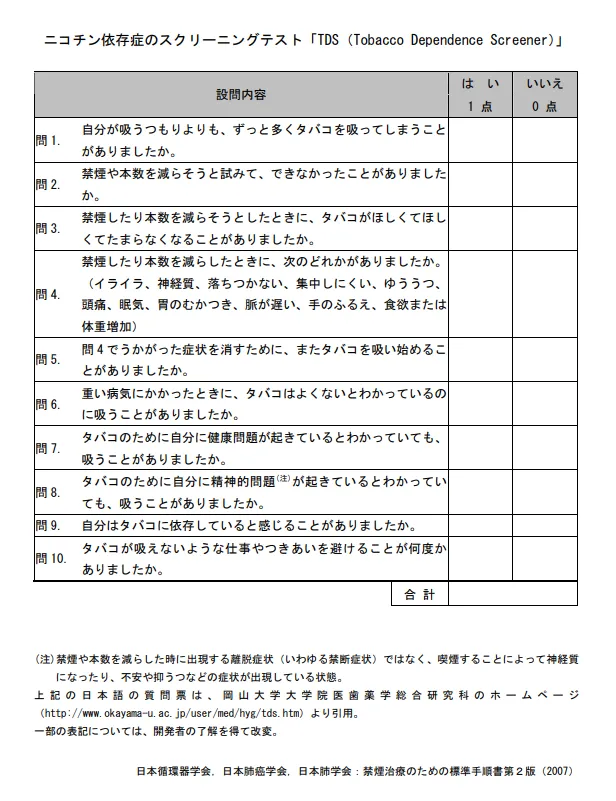 ●TDS(ニコチン依存症テスト)5点以上 ※下の画像参照
